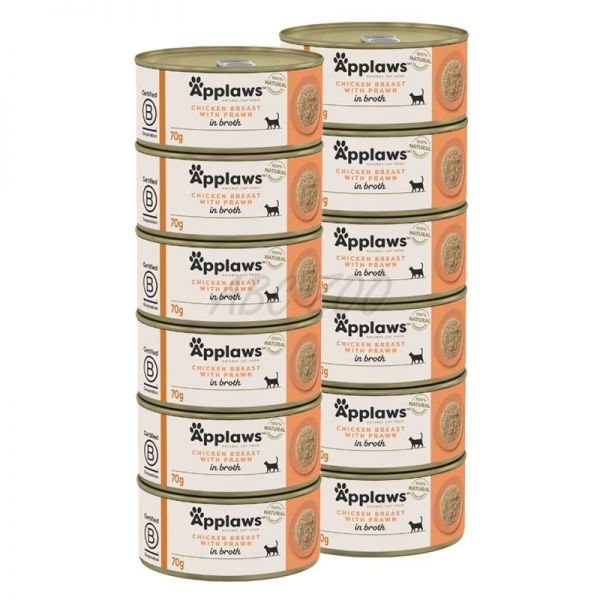 Applaws Konzerv macskáknak csirkemell és garnelával, alaplében 12 x 70 g