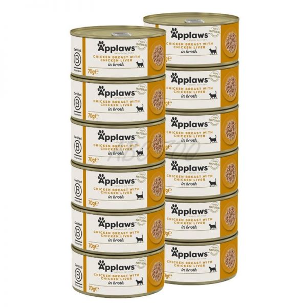Applaws Konzerv macskáknak csirkemell és máj, alaplében 12 x 70 g