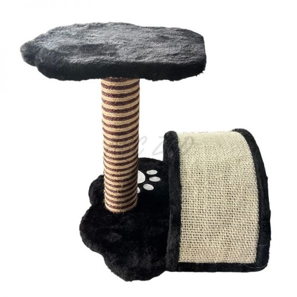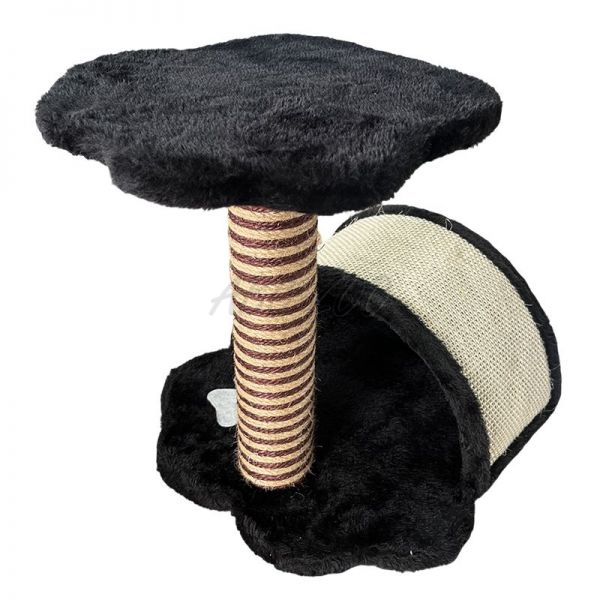 A multifunkcionális kaparófa macskáknak egyesíti a kaparóhelyet, játékot, búvóhelyet és pihenést egy kompakt dizájnban. A stabil alapnak és a masszív kivitelezésnek köszönhetően a kaparófa aktívabb macskák számára is megfelelő. Az elegáns fekete dizájn világos sisal kötéllel borított felülettel minden szobába illik.