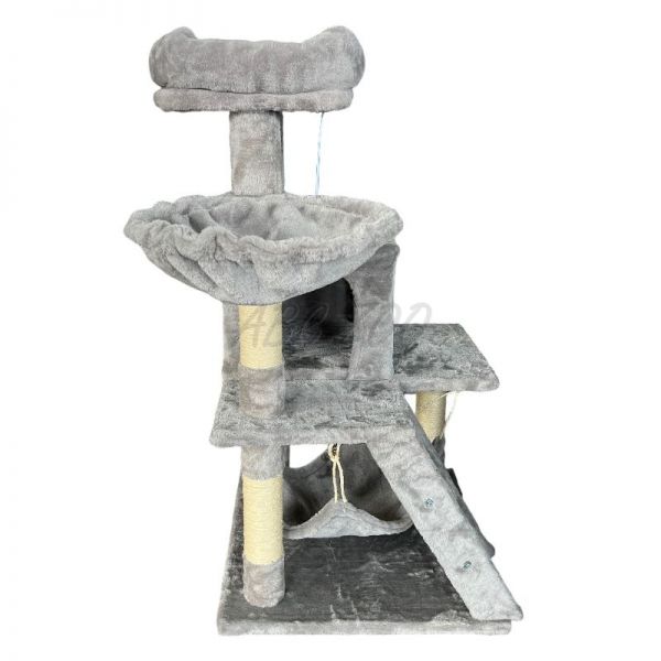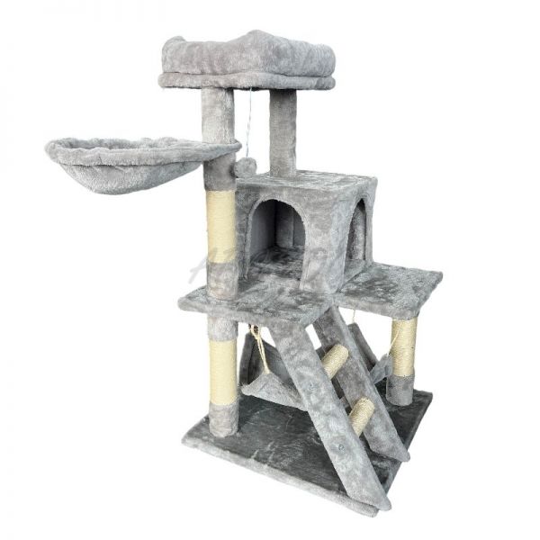 Ez a kaparófa mindent megad macskájának, amire szüksége van aktív játékhoz és nyugodt pihenéshez. Stabil alapzattal rendelkezik, amely szilárd házikót, emelt platformot, kényelmes fekhelyet és puha pihenőhelyet kínál a legfelső szinten. Az olyan kiegészítők, mint a kötél, a függőágy és a létra, támogatják a mozgást, a mászást és a játékos ösztönöket.