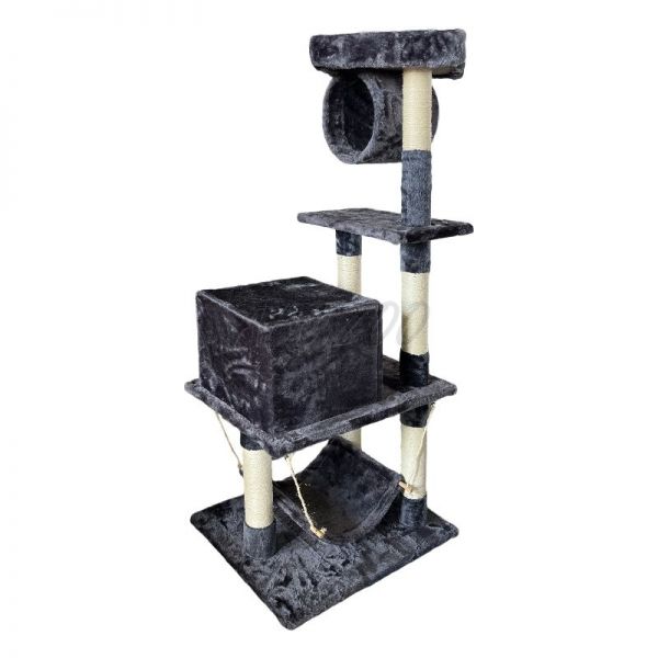 A Mavikat Luna modell plüss fekhellyel, házikóval, alagúttal, függőággyal és játékkal van felszerelve, így kényelmet és aktivitást kínál egy vagy több macska számára. A stabil szerkezet, a kiváló minőségű sisal oszlopok és a puha plüss garantálja a hosszú élettartalmat és a maximális kényelmet minden macska számára.