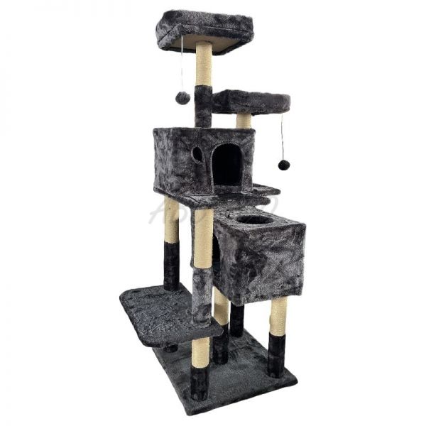 Ez a macskakaparófa ötvözi a pihenőhelyeket, házikókat és kaparóoszlopokat, így macskája játékosan kielégítheti ösztöneit. Két tágas búvóhely elegendő magánszférát biztosít, míg a magas fekvőhelyekről könnyedén figyelheti a környezetét. A szizálos oszlopok ideális helyet kínálnak a körmök élezésére, miközben megóvják bútorait a karcolásoktól.
