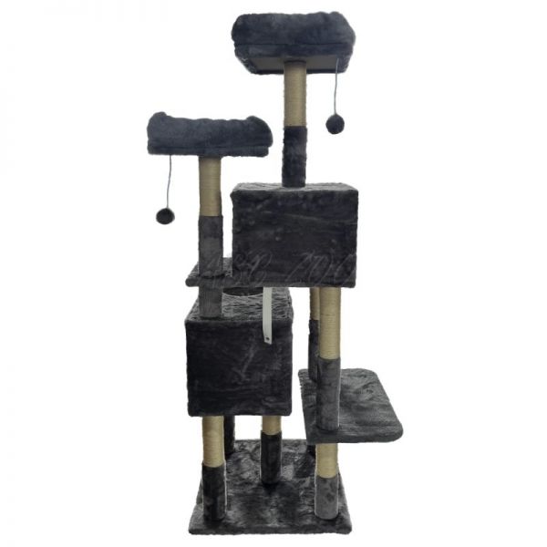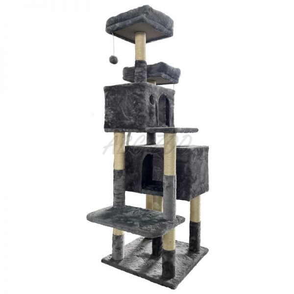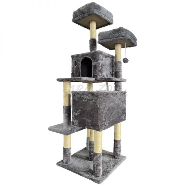 Ez a macskakaparófa ötvözi a pihenőhelyeket, házikókat és kaparóoszlopokat, így macskája játékosan kielégítheti ösztöneit. Két tágas búvóhely elegendő magánszférát biztosít, míg a magas pihenőhelyekről könnyedén figyelheti a környezetét. A szizálos oszlopok ideális helyet kínálnak a körmök élezésére, miközben megóvják bútorait a karcolásoktól.