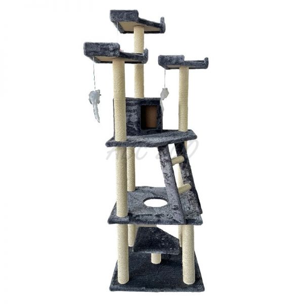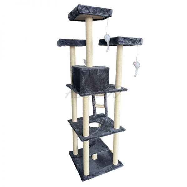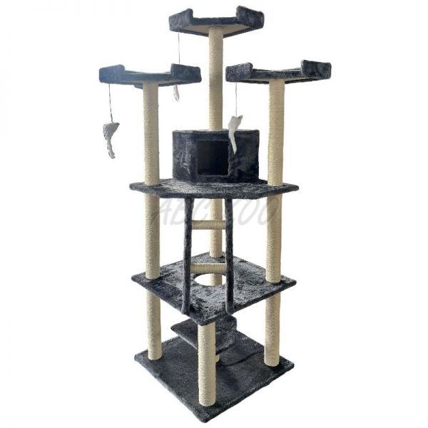 Ez a magas és stabil kaparófa tökéletes egy vagy több macskás háztartások számára, amelyeknek szükségük van egy aktív időtöltésre és egy nyugodt búvóhelyre. Különböző elemek kombinációját kínálja, mint például kilátók, házikó, létra és játékok, így maximális kényelmet és szórakozást nyújt a macskának. A sisal oszlopok támogatják a macskák természetes kaparási ösztönét, így védik bútorait a sérülésektől.