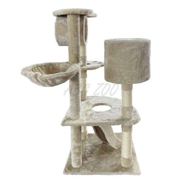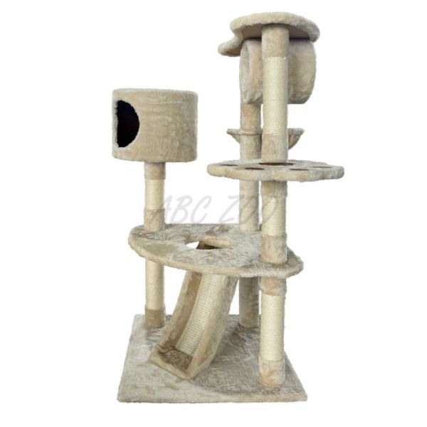Ez a stílusos és funkcionális kaparófa ideális egy- vagy többmacskás háztartások számára, ahol a cicák aktív elfoglaltságra és nyugodt pihenőhelyre egyaránt vágynak. Többféle elemet kínál – kilátót, házikót, rámpát és alagutat – így egyszerre biztosít szórakozást és kényelmet. A szizálos oszlopok a macskák természetes kaparási ösztönét szolgálják, miközben megóvják a bútorokat a karcolásoktól.