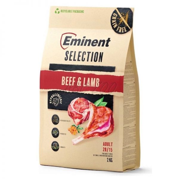 Eminent Selection egy új szuperprémium hipoallergén eledelcsalád, amely ideális érzékeny emésztésű kutyák számára. A receptúra a minőségre és a természetes emészthetőségre helyezi a hangsúlyt, tiszteletben tartja a kutyák természetes igényeit, és tápanyagokban gazdag fehérjéket biztosít különböző húsforrásokból: kacsából, marhából, bárányból, rovarokból, halból és sertésből.