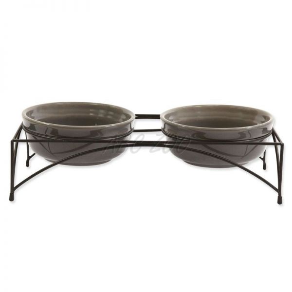 Dog Fantasy Set kerámia tálak állvánnyal szürke 2 x 12,5 cm