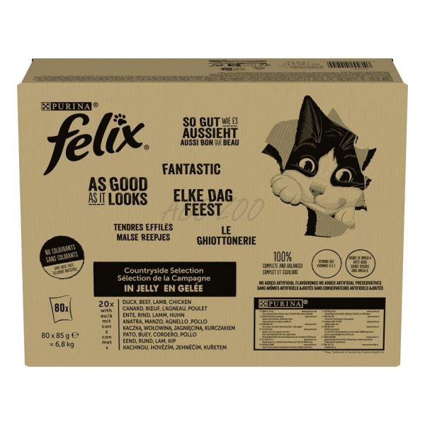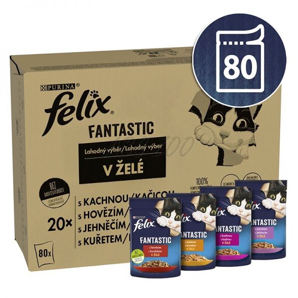 FELIX Fantastic Multipack tasakos eledel - marhával, csirkével, kacsával és báránnyal zselében 80 x 85 g
