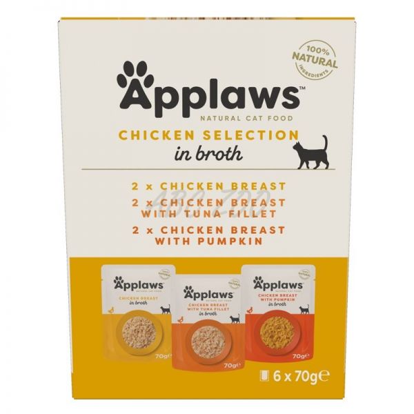 Applaws Chicken Selection Tasak macskáknak, csirkehús kiválasztás lében 6 x 70 g