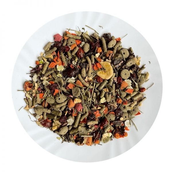 Hosszú távú etetésre alkalmas, egész zöldségekben, gyümölcsökben, ropogtatnivalókban és lóheregyűrűkben gazdag, szelektív és kiegyensúlyozott takarmánykeverék tengerimalacok számára.