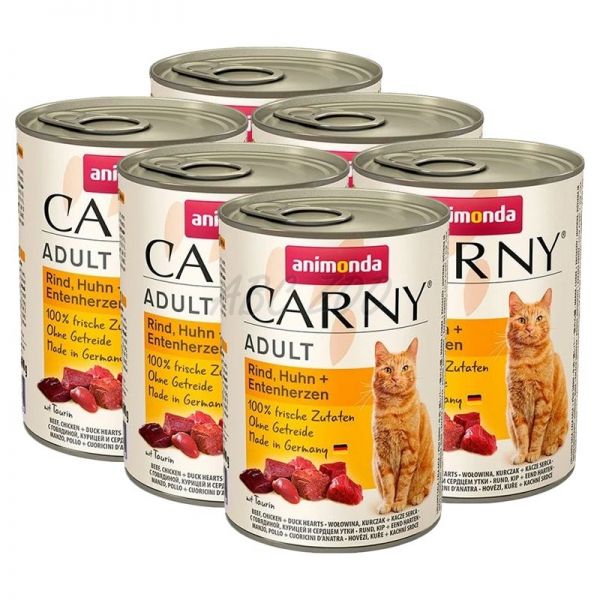 CARNY ADULT eledel marha- és csirkehúsból + kacsaszív - 6 x 400g