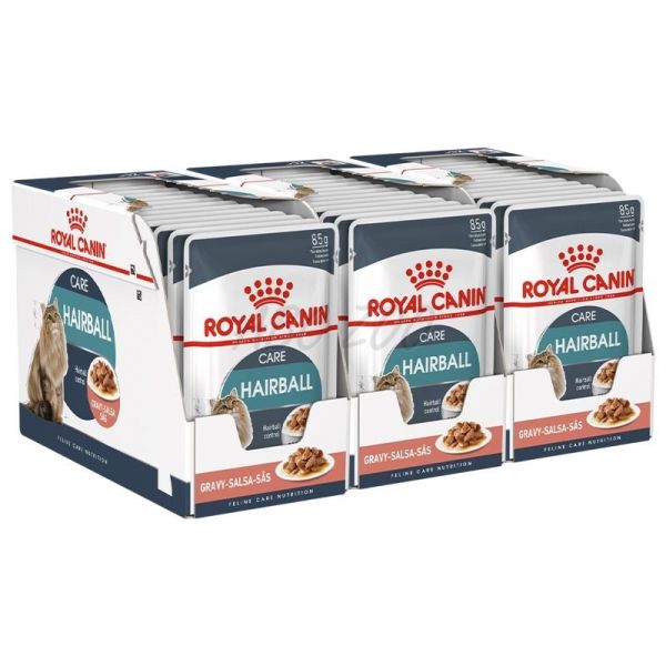 A Royal Canin Hairball Care egy teljes értékű szuperprémium tasakos eledel felnőtt (1 évesnél idősebb) macskák számára, amely csökkenti a trichobezoárok (szőrcsomók az emésztőrendszerben) képződését és hozzájárul azok megfelelő kiválasztásához.