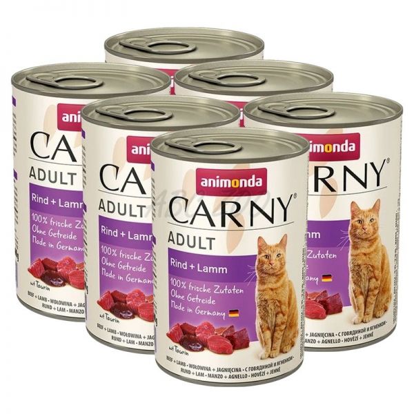 CARNY ADULT cicaeledel, marha és bárányhús - 6 x 400 g