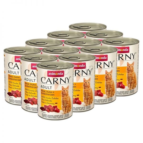 CARNY ADULT eledel marha- és csirkehúsból + kacsaszív - 12 x 400g