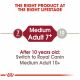A ROYAL CANIN® Medium Adult 7+ kifejezetten közepes méretű, 7 éves és idősebb kutyák számára készült, akik 11-25 kg között mozognak, és figyelembe veszi minden tápanyagigényüket.