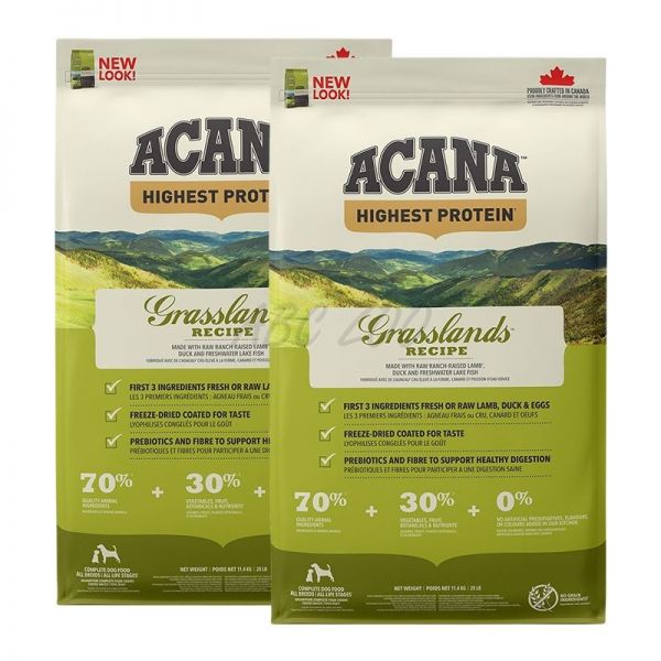Az ACANA Grasslands egy csúcsminőségű táp egyedülálló gabonamentes összetétellel, bárány- és kacsahússal, minden kutya számára fajtól és kortól függetlenül.