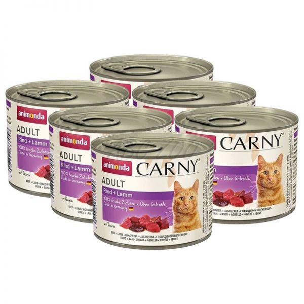 CARNY ADULT nedves macskaeledel, marha és bárány 6 x 200 g