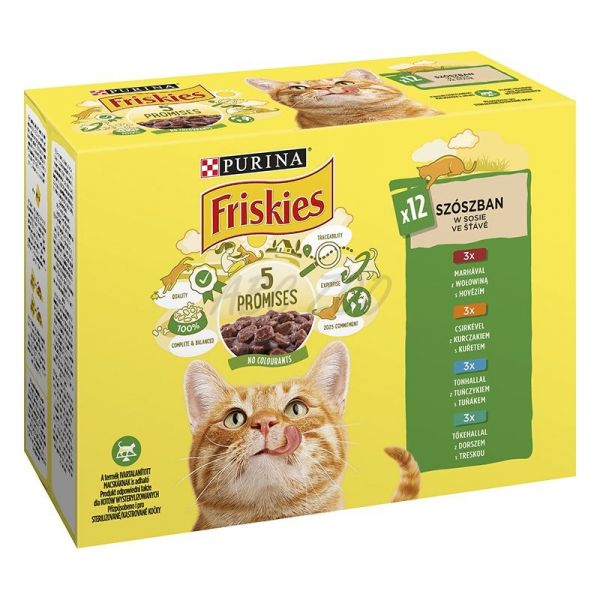 Friskies alutasakos macskatáp - marha, csirke, tonhal és tőkehal szószban 12 x 85 g