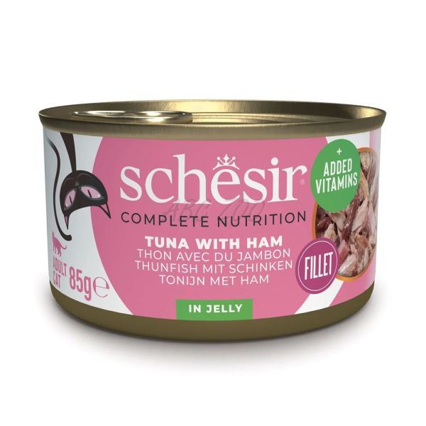 Schesir konzerv tonhalla és sonkával aszpikban, felnőtt macskák számára.