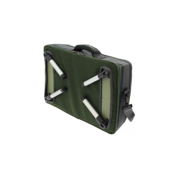 Nagyon jól megtervezett, kiváló kidolgozású táska beépített asztallal. Az asztal eltávolítható, így klasszikus bivakasztalként és külön tárolótáskaként is használható. Masszív kivitel, minőségi cipzárakkal. Soha többé nem kell keresgélned a felszerelésedet a sátorban – minden egy helyen, átláthatóan elérhető. A táska vastagon párnázott – belül, a fülénél és a vállpántnál is. A belső tér igény szerint alakítható és testreszabható. Ideális hosszabb pontyhorgász túrákra.