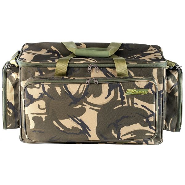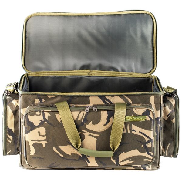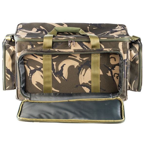 Nagy táska, amelyben minden belefér. Fő kamra cipzáras fedéllel, 3 külső nagy cipzáras zseb. Luxus fogantyúk és állítható párnázott vállpánt kényelmes hordozásra. Szilárd, vízálló EVA alj. Robusztus szövet és erős X-Strong cipzárak. A táska taljesen bélelt így maximálisan védett a szálított felszerelésünk. DPM terepminta.