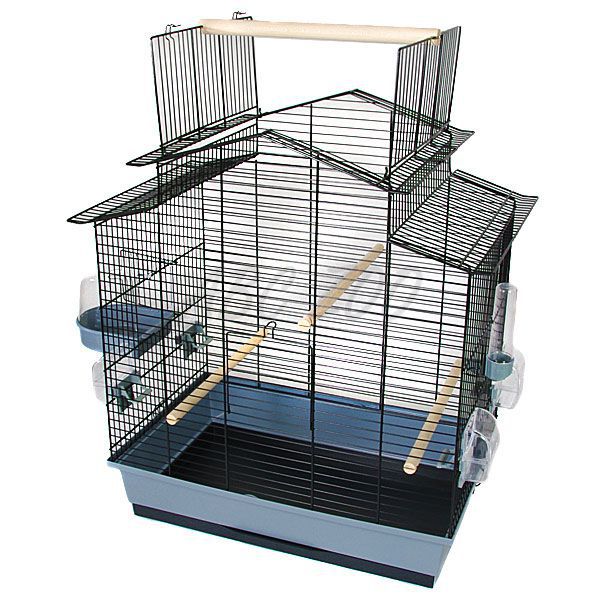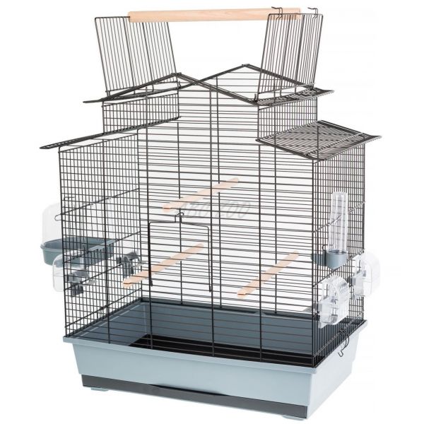 Kalitka kisebb madarak számára, tartozékokkal és praktikus felső ajtóval a mozgástér bővítéséhez. Fekete színű rács, szürke színű tálca. Bővebb leírás