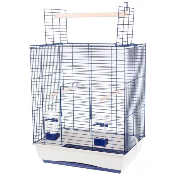 A papagájok és egyéb madarak számára készült kalitka tartalmaz 3x kakasülőkét, 2x etetőt + tisztító fiókot.