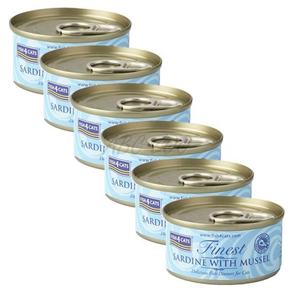 Fish4cats finom szardínia és kagyló konzerv macskák számára.
