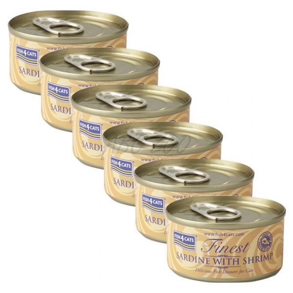 Fish4cats omlós szardínia és garnélarák konzerv macskák számára.