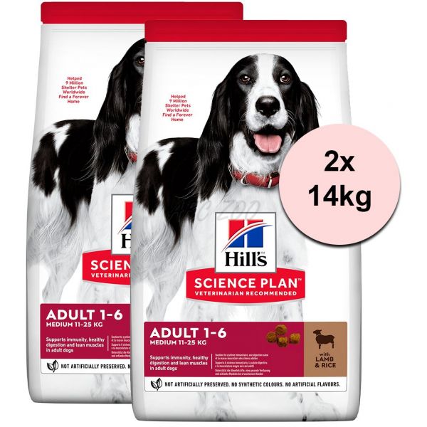 Hill's Science Plan Canine Adult Medium Lamb & Rice 2 x 14kg