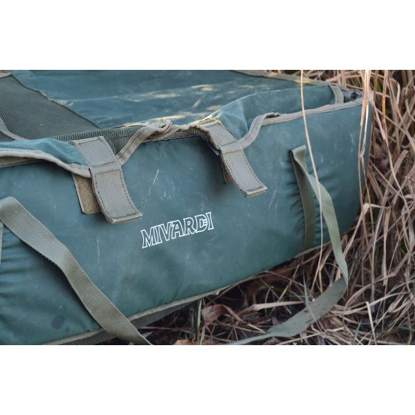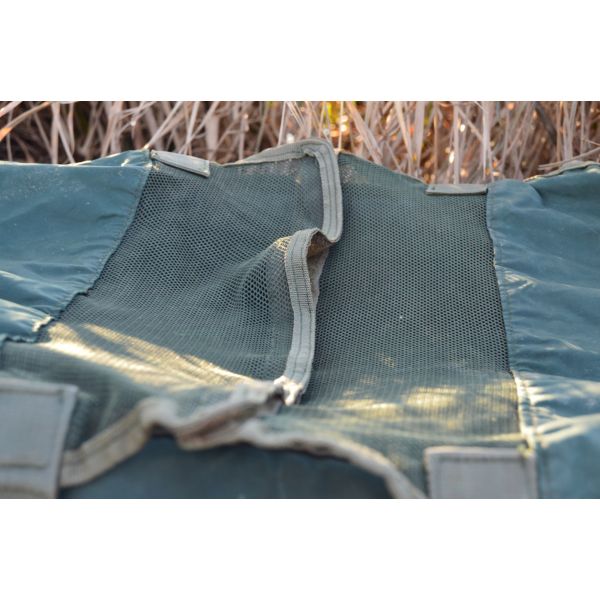 Tágas és jól párnázott pontyszőnyeg teljesen halbarát belső anyaggal. A szőnyeg térdelővel és hálós fedéllel van felszerelve, mely részben vagy teljesen tépőzárral zárható.