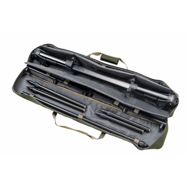 Kompromisszumok nélküli és rendkívül stabil bottartó. Alapesetben három pár teleszkópos lábbal szállítjuk, különböző hosszúságban, bajonett-hosszabbító rendszerrel. A különböző lábhosszúságok és különböző dőlésszög-beállítások lehetővé teszik az állványpozíció-változatok széles választékát, hogy bármilyen helyzetet kezeljenek. A középső rész meghosszabbításának és mindkét gerenda oszlopának rögzítését robusztus, nagyon egyszerű vezérlésű zárak oldják meg. Az állvány elrendezése és összeállítása ezért néhány pillanat kérdése.
