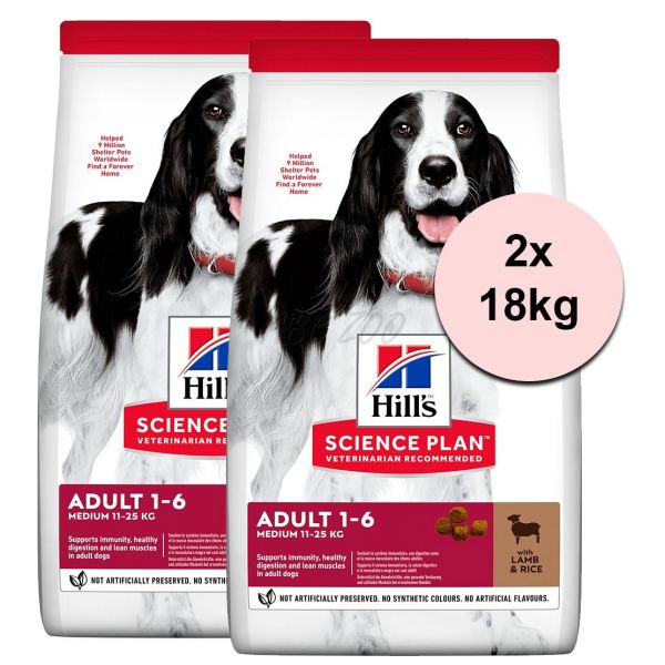 Hill's Science Plan Canine Adult Medium Lamb & Rice 2 x 18 kg