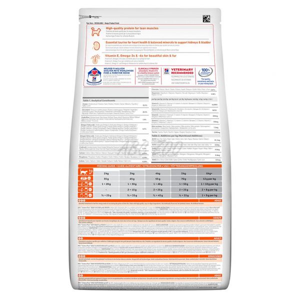 A HILL'S SCIENCE PLAN Adult száraz macskatápot kifejezetten az erejük teljében levő macskák energiaigényének kielégítésére fejlesztettük ki. Kiváló minőségű és könnyen emészthető összetevőkből készül.Esszenciális taurinnal a szív egészségéért és kiegyensúlyozott ásványi anyagokkal a vesék és a húgyhólyag támogatására.Kiváló minőségű fehérjével a sovány izomzatért.E-vitaminnal, omega-3 és omega-6 zsírsavakkal a gyönyörű bőrért és szőrzetért.