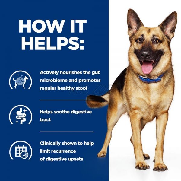 ● Klinikailag bizonyítottan már 24 óra alatt megoldja a hasmenést, és elősegíti az egészséges rendszeres bélmozgást● Szabadalmaztatott ActivBiome+ összetevő-technológiával készült, amely bizonyítottan gyorsan táplálja a jótékony bélbaktériumokat, és támogatja a GI mikrobiom egészséges egyensúlyát.● Egyedülálló prebiotikus rostok keveréke, amely támogatja a rendszeres bélmozgást és segíti az emésztési funkciók egyensúlyát.● Magas omega-3 zsírsavtartalom (DHA és EPA)●Kérje meg állatorvosát, hogy megbizonyosodjon arról, hogy a Hill's Prescription Diet Gastrointestinal Biome szárazeledel megfelelő-e kutyájának.