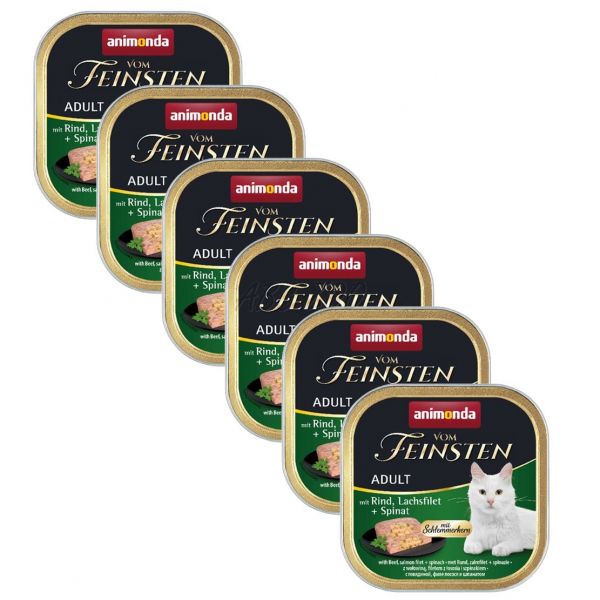 Animonda Vom Feinsten Adult Cat marha, lazac + spenót 6 x 100 g