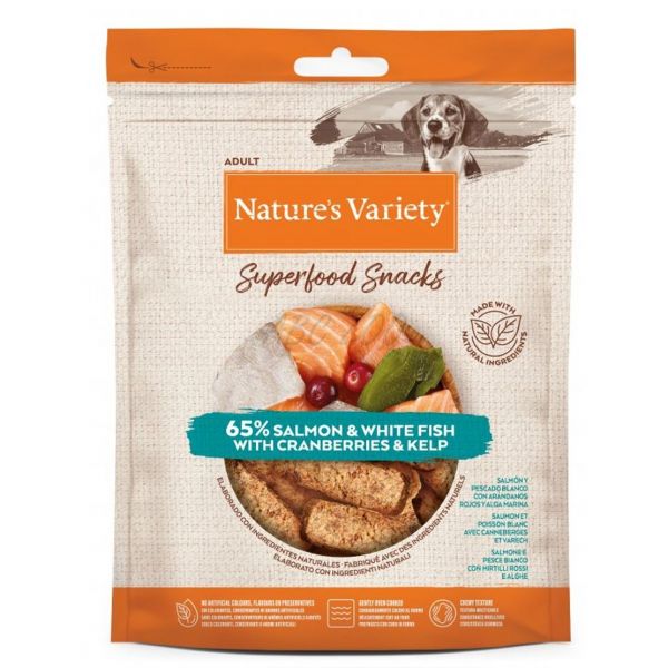 összetevők: Lazac* (35%), fehér hal* (31%), rizsliszt*, növényi glicerin, zabliszt*, szárított áfonya (1,51% friss áfonya egyenérték 4%), szárított kelkáposzta* (1,03% friss kelkáposzta egyenérték 4%), *természetes összetevők.