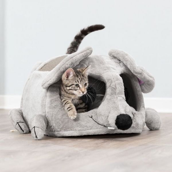 Plüss egér formájú pelus, vakarófával és játékkal. Bővebb leírás