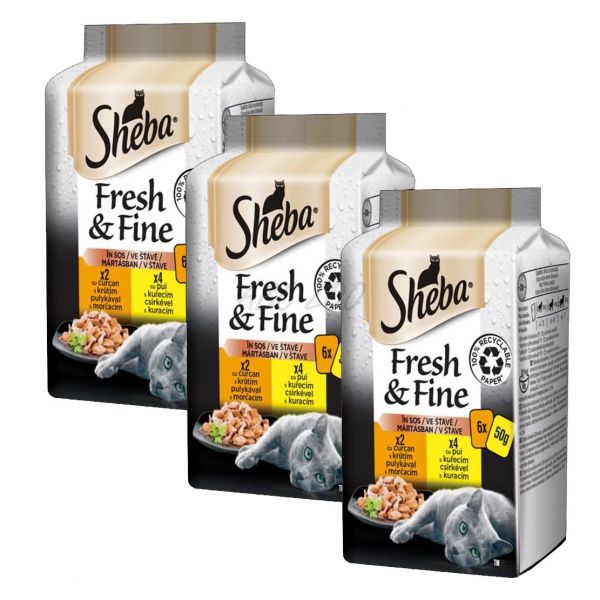 Sheba Fresh & Fine csirkéből és pulykából 3 x (6 x 50 g)