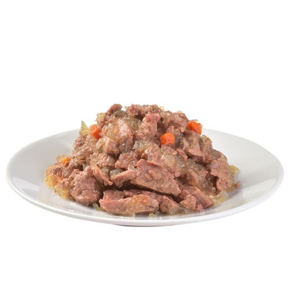 összetevők: 85% húsfilé (62% csirke, 15% máj, 4% kacsa, 4% pulyka), húsleves, 3% sárgarépa, 0,5% rozmaring, ásványi anyagok, borsókeményítő.