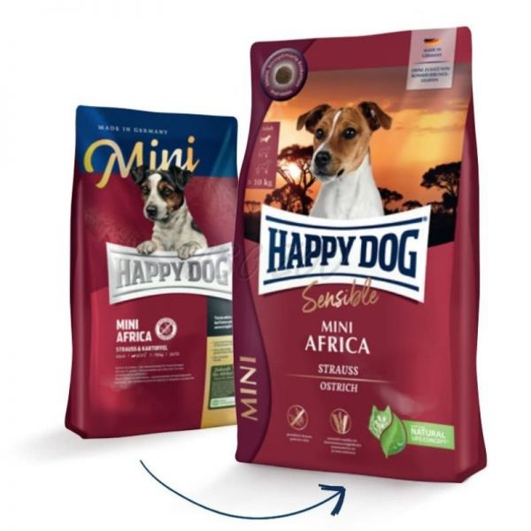 Ez az eledel speciális igényű kis termetű kutyák érzékeny emésztéséhez igazított. Különlegessége hogy magas arányban tartalmaz strucc húst (18%), burgonyábal kombinálva. A strucchús ideális érzékeny és allergiás kutyáknak, nagyon exkluzív és ritka fehérjeforrás. A burgonya nem tartalmaz glutént, ezért gyakran ajánlott mint gabonahelyettesítő intolerancia esetén. A receptúra értékes omega-3 és omega-6 zsírsavakkal gazdagított. Ez az eledel váltja fel az eddig ismert „Happy Dog Supreme My little Africa“ száraztápot..