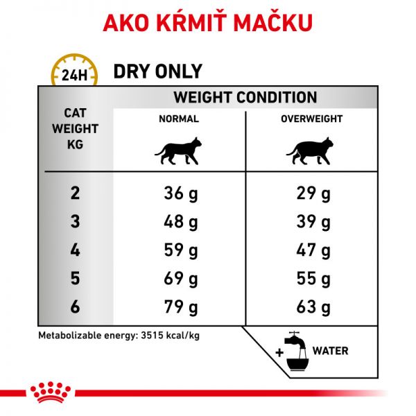 Speciális állatorvosi étrend a húgyúti betegségben szenvedő, túlsúlytól az elhízásig hajlamos felnőtt macskák számára. A húgyúti betegségek macskáknál húgyúti kövekhez vezethetnek, beleértve a struvit- vagy kalcium-oxalátköveket is. A hólyag, a húgycső és a vese megfelelő működését elősegítő, túlsúlyra hajlamos macskák számára összeállított állatorvosi diéta a húgykövek feloldását, a telítetlen vizelet előállítását és a kiújulás megelőzését szolgálja.Az állatorvosi diéta alkalmazásakor mindig konzultáljon állatorvosával.