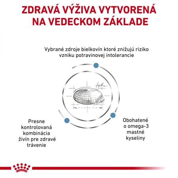 Speciális állatorvosi étrend felnőtt macskák számára, amelyek bizonyos összetevőkkel és tápanyagokkal szembeni táplálékintoleranciában szenvednek. Ha egy macska emésztési zavarokat, bőrkiütéseket vagy gyulladásos bélbetegségeket tapasztal fehérjében és szénhidrátokban gazdag étrenddel kapcsolatban, akkor valószínűleg intoleranciája van ezekkel az összetevőkkel szemben. Az allergiás immunrendszeri reakciókkal és diagnosztizált eliminációs diétával rendelkező macskák esetében az állatorvosi diéta segít a krónikus hasmenés és bőrgyulladásos problémák kezelésében. Az állatorvosi diéta alkalmazásakor mindig konzultáljon állatorvosával.