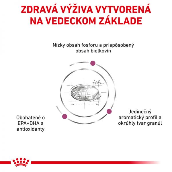 A vesefunkciót támogató, alacsony foszfor- és közepesen magas minőségű fehérjéből álló formula, amely hozzájárul a macska életminőségének javításához.