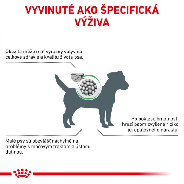 Speciális állatorvosi diéta túlsúlyos felnőtt, kistestű kutyák számára 10 kg-ig.