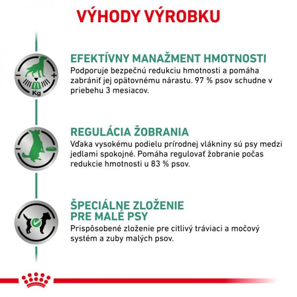Termék előnyei HATÉKONY FOGYATÉKMENTÉS Támogatja a biztonságos súlycsökkentést és segít megelőzni a súlyvisszaszerzést. A kutyák 97%-a 3 hónapon belül lefogy.Táplálék-szabályozás A természetes rostok magas arányának köszönhetően a kutyák két étkezés között is jóllaknak. A kutyák 83%-ánál segít szabályozni a koldulást a súlycsökkentés során. KISKUTYÁK KIS KUTYÁK KEDVEZETT ÖSSZETÉTELEA kistestű kutyák érzékeny emésztőrendszeréhez, húgyúti rendszeréhez és fogazatához igazított formula.