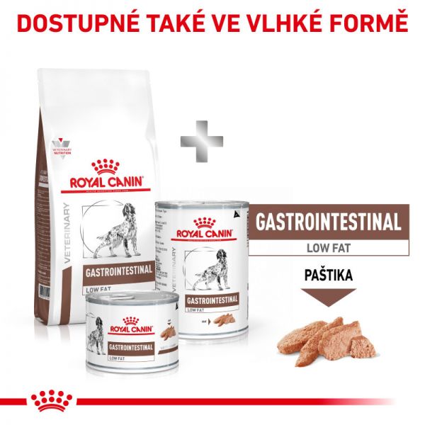 A Dog Gastrointestinal Low Fat termékcsaládot a gyomor-bélrendszeri rendellenességekkel küzdő, túlsúlyos és elhízásra hajlamos kutyák számára fejlesztették ki. Bővebb leírás