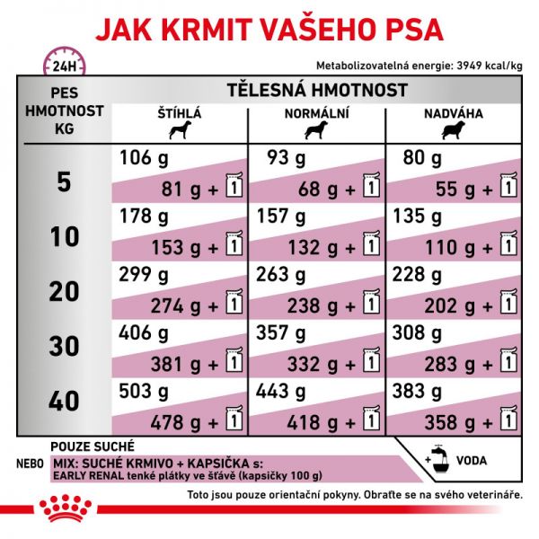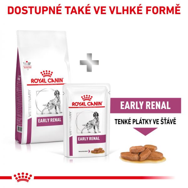 ROYAL CANIN® EARLY RENAL szárazeledel kutyák számára készült teljes értékű diétás eledel, amely a krónikus veseelégtelenségben szenvedő kutyák veseműködésének támogatására szolgál. ROYAL CANIN® EARLY RENAL szárazeledel kutyák számára készült. Bővebb leírás