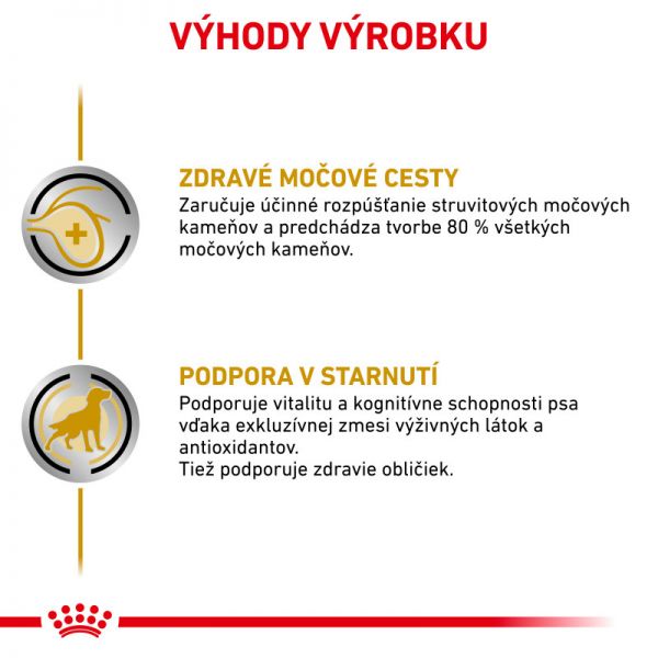 URINARY S/O AGEING egy teljes értékű diétás eledel kutyák számára a struvitkövek feloldására és a kiújulásuk csökkentésére. Bővebb leírás