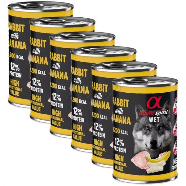 Alpha Spirit Dog Wet - Nyúl & Banán 6 x 400 g